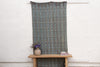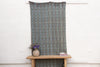 This striking textile is an authentic Vintage Indonesian Ikat Panel, defined by its commanding height and its sophisticated, cool-toned palette. Dating to the mid-to-late 20th Century, this piece measures a monumental 50 inches wide by 100 inches long .  The textile showcases the complex Ikat technique, where threads are resist-dyed before weaving, creating the characteristic feathered and repeated patterns. This panel is distinguished by its harmonious palette of deep indigo, soft teal, and subtle emerald green, separated by vertical lines of black and natural ecru. The design features rhythmic, geometric teardrop motifs repeated in vertical columns, creating a serene yet structured visual effect. The cool colors and exceptional length make this a highly adaptable decorative piece.
