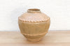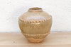 This antique stoneware pot is a testament to the elegant ingenuity found in utilitarian design. Likely originating from Asian provincial kilns and dating to the 18th or 19th century, this vessel was built to serve a purpose. The pot’s rounded, simple form is elegantly framed by two sculpted horizontal "rope" bands wrapping around its body, a tactile detail that mimics the fiber bindings used for carrying. The surface wears a muted, light tan glaze with a soft, rustic texture that speaks volumes of its history.