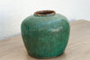 Early 20th century Chinese ceramic vase. This antique farmhouse style ceramic jar has a beautifully aged emerald green glazed finish. This lovely antique pot was originally used to store honey or oil.