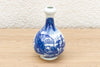 This small vase is a miniature masterpiece of serene beauty. This antique Chinese porcelain vase, likely dating to the late 19th or early 20th century, is a testament to the elegant artistry of hand-painted ceramics. The graceful bottle vase form is a canvas for a stunning, hand-painted landscape scene, complete with a house, a bridge, and trees, all rendered in a timeless blue and white.