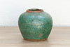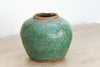 Early 20th century Chinese ceramic vase. This antique farmhouse style ceramic jar has a beautifully aged emerald green glazed finish. This lovely antique pot was originally used to store honey or oil.