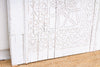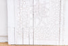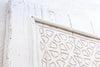 Bring a piece of history and refined artistry to your home with this magnificent antique Moroccan entrance door. This impressive piece of architectural history, likely dating to the 19th century, was originally a grand entrance to an important home or riad. Meticulously hand-carved from solid wood with a distinct Moorish arch design, the door's enduring beauty is a testament to the artisan's skill. The intricate geometric patterns, a hallmark of Islamic art, create a mesmerizing interplay of light and shadow. The wood, with its beautifully distressed white finish, has acquired a weathered patina over time, which adds a sense of authentic character and a story that has spanned over a century.