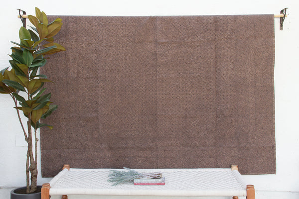 Earthen Taupe Handstitched Filanan Gudari Bedcover