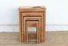 This set of vintage nesting tables is a beautiful testament to practical, space-saving design. With the largest measuring 20 inches wide and 25 inches high, this set, likely dating to the mid-20th century and featuring a classic Chinese design influence, offers instant versatility. The whitewash wood finish and simple, straight legs give them a timeless, elegant profile. Subtle carved details on the aprons and tops of the tables add a quiet layer of artistry, a hidden beauty that reveals itself upon closer inspection.