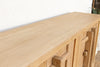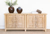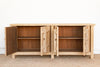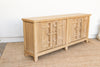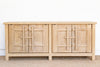 Step into a world of incredible history and commanding presence with this magnificent old wood Chinese sideboard. Measuring a generous 90 inches long, 18 inches deep, and standing at a versatile 37 inches high, this cabinet is a powerful and singular statement piece. The sideboard's most striking feature is its distinct carved doors, which are strongly reminiscent of the ancient, fortified gates of a Chinese fortress. The wood has a rich, storied patina that speaks of its long and useful life. This authentic patina, along with the cabinet's clean lines and robust form, tells a story of a culture that values strength, history, and beauty.