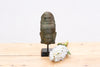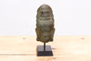 This rare Antique stone head fragment, measuring 3 inches wide, 3 inches deep, and 9 inches high (including its custom stand), embodies the profound spiritual artistry of Southeast Asia. Likely originating from the Khmer (Cambodian), this sculpture depicts a serene deity or spiritual figure, instantly recognizable by its tranquil expression and elaborate, multi-tiered headdress. The stone bears a weathered, aged patina that speaks to its genuine antique or vintage origins.