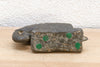 This remarkable sculpture is a compact embodiment of power and wisdom. This genuine stone fragment, likely carved in the 18th century style in Southeast Asia, depicts an elephant in a strong, stylized, and kneeling posture with its trunk curled inward. The elephant is a cherished symbol of strength, stability, and good fortune in Asian mythology. The figure's dark gray-black surface and rough, highly textured finish lend it a primitive, ancient character, revealing the palpable history of the stone.
