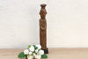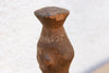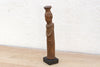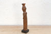 This striking figure is a powerful testament to the elegant simplicity of primitive carving. This antique tribal sculpture, likely originating from Central Africa and dating to the mid-20th century, is a masterful example of ancestral art. The figure is characterized by its elongated, static posture, simplified facial features, and the powerful suggestion of flowing robes. The dark, worn patina of the wood speaks volumes of its long life and original function as an ancestral spirit figure or protective deity.