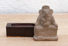 Measuring 6 inches wide and 8 inches high, this stone Ganesha figure is a constant reminder of wisdom and good fortune, perfect for adding depth and gravitas to any shelf, console, or desk in a Global, Eclectic, or Transitional interior.