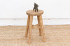 A rustic beauty, this weathered wooden round stool isn't just furniture; it's a whisper of the past. From the early 20th century, this round stool has aged gracefully, acquiring a beautifully textured finish that speaks volumes about its journey.Deceptively simple in its form, this stool showcases the ingenuity of traditional Chinese carpentry. Its three splayed legs aren't merely supports; they're an intriguing display of joinery. Interlocking stretcher bars form a central triangle, adding stability and a touch of design magic to the otherwise unadorned structure. Add this antique piece as an occasional stool, a charming end table or a rustic pedestal for a plant stand.