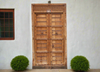 A beautiful 19th century Indian haveli door with original hand-forged iron straps and nail heads. This antique door comes with its original frame with fine decorative all around. The door frame has a miniature Ganesha carving in the center of the over-door and retains traces of its original painted finish. This antique Indian door was made from teak and has a sun bleached finish.
