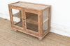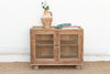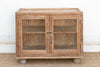At 29 inches high, this cabinet is exceptionally versatile. It is the ideal height for a statement bar cabinet, a luxury bathroom towel and toiletry display, or a "curiosity cabinet" in a study. Its shallow depth (17 inches) makes it perfect for smaller alcoves or entryways. To emphasize its airy, glass-fronted design, style the internal shelves with a monochrome collection of white ceramics, vintage glassware, or a stack of textured linens. The raw, weathered wood grain acts as a stunning organic contrast to polished surfaces or modern marble floors.