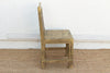 This 36-inch accent chair is a rare architectural find, showcasing the intricate woodcarving traditions of 19th-century colonial craftsmanship. Carved from solid hardwood, the chair's focal point is a grand, high-relief backrest featuring a central heraldic shield flanked by sprawling, neoclassical acanthus scrolls. The piece retains its original painted finish, which has aged into a stunning, sun-drenched mustard patina. With its sturdy, block-style legs and a scalloped front apron, this chair balances regal European iconography with the rugged, "Modern Primitive" construction of a provincial workshop. Originally commissioned as a ceremonial or "statement" seat for a prominent estate, this chair displays the heavy hand-tooling characteristic of late-colonial furniture. The heraldic motif on the splat indicates it may have been part of a custom set representing a family crest or guild symbol. The finish is entirely authentic; the layers of pigment and gold leaf have naturally thinned over time, revealing the warm timber underneath—a look that is impossible to replicate with modern distressing techniques. This is a collector’s piece that serves as a functional artifact of global woodworking history.
