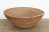 At a sprawling 29 inches wide and 11 inches deep, this oversized nomadic harvest vessel is a truly spectacular artifact of everyday tribal life. Baskets of this monumental scale were the heavy lifters of the agrarian home. Crafted to withstand the rigors of the harvest season, a vessel this large would have been essential for winnowing massive quantities of grain, sorting heavy crop yields, or safely storing communal food supplies. Woven entirely by hand from locally sourced natural grasses and reeds, this bowl features beautifully tight coiling and a completely raw, unadorned rim that highlights the organic fraying of the natural fibers. When you flip this massive piece over, you are greeted by a striking, thick patch of original earthen mud sealing. The heavily cracked, sun-baked clay is a brilliant historic technique used to waterproof the base against damp soil and prevent precious seeds from escaping the weave. Because of its impressive 29-inch diameter, this vessel commands attention and is incredibly versatile for floor styling. It makes a breathtaking, organic drop-zone beside a fireplace for holding kindling or rolled throw blankets. If you have a large enough dining table or a sprawling kitchen island, it also serves as a phenomenally textured wabi-sabi centerpiece that perfectly grounds modern or Japandi interiors.