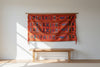 This piece is a powerful vertical or horizontal accent, perfect for adding concentrated color and history to Global Eclectic, Minimalist, or Mid-Century Modern spaces. .Add this vintage fabric to your bedroom or living room for a pop of color and texture or hang it over a credenza or console to introduce dynamic texture and symbolic depth, letting the rich orange tone act as a warm, inviting anchor.