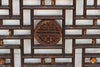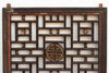 This arresting pair of Chinese Lattice Window Screens is a pristine example of refined architectural salvage, dating to the early 20th century. These panels would have originally defined space within a prosperous home, allowing light to filter through while maintaining privacy. The design is highly symbolic: a precise, geometric "ice-ray" or rectangular lattice pattern is punctuated by central, deeply carved medallions featuring the Shou symbol—the Chinese character for longevity and good fortune. The dark wood frame, with its rich, natural patina, is accented by remnants of the original painted finish and antique iron hardware, all of which contribute to the panels' authentic, aged character.