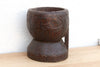 This dramatic vessel is a genuine piece of Primitive Treenware and Tribal Art, transforming a functional grain or spice mortar (Ukhali) into a significant decorative artifact. Likely dating to the early 20th Century, its heavy, dark hardwood form and highly expressive high-relief carving are characteristic of folk art traditions found in remote, artisanal regions across South Asia (including areas like Orissa/Odisha). The figural motifs—often representing local deities, ancestral figures, or everyday life—imbue the vessel with deep cultural narrative. The wood is dense, and the deep-brown surface is layered with an unmistakable, heavy patina—the dark, soft luster that only decades of ritual handling and oil absorption can create. Its sculptural form is a testament to the artisan's skill and the beauty of utility.