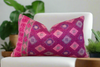 Magnificent lumbar pillow made from a wonderful batik Hmong fabric. Pillow have a center strip of rich Indigo textile complemented by a soft linen in a solid cream color. Hidden zipper on top. Solid cream linen backs & down blend filler.