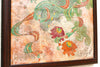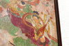 This striking framed panel is a magnificent vintage artwork executed in the challenging and specialized Fresco Style, utilizing pigment painted directly onto a plaster or thick, textured compound. This technique intentionally evokes the grand scale and antiquity of ancient wall paintings from regions like China's Silk Road. The artwork is presented as an organic fragment, deliberately sculpted to show raw, torn, and irregular edges, emphasizing the material's fragility and age. The painting itself features vibrant botanical and aquatic motifs (stylized lotus flowers), creating a flowing, ethereal composition where the saturated colors contrast beautifully against the distressed, earthy background.