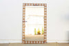 Showing clean contemporary lines contrasting with reclaimed teak and handmade inlay work. This beautiful boho modern mirror would be a staple in any home. Our blossom mother of pearl inlay collection is inspired by the opening of a lotus flower which is a symbol of purity and enlightenment. The reclaimed teak is hand-carved forming the flower shape, the inlay pieces are cut and carefully hammered into the wood to create the lovely lotus design.