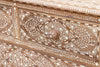 For centuries, the intricate art of inlay has adorned the furnishings of palaces and estates, a testament to refinement and skilled craftsmanship. This dresser carries that legacy, with delicate materials meticulously set into a rich teak wood base, creating captivating patterns across its facade.