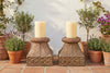 This antique artful pair of bases can bring unique character and functionality to your space, use them as display pedestals or unique side tables by adding a glass top on them.